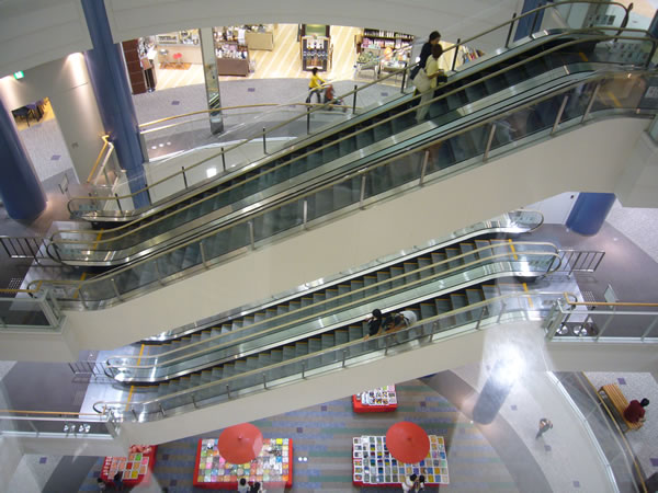 | 今日は少し早めに仕事を終え、明るいうちに光明池のCOMBOXに向かいました。買ったのは外付けのHD300Gです。吹き抜けなのに上に上がっても冷房が効いていないと言うことはないです。うまくできていますね。ここへ来ると広々として明るくて気分がいいです。 |