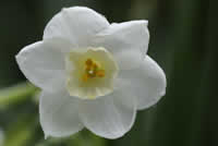 これぞ水仙です。正面の顔を取りました。前かがみの水仙を正面から写すにはかなりかがまないと写せません。その努力だけで取れた写真です。 |