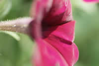ペチュニアです。暑さにも寒さにも強く、きれいな花をいつも咲かせています。今日は真正面ではなく花の裏側も少し見えるように撮しました。花の根元の方はうぶ毛のようなものが密集していました。Wikipediaで調べたら寒さには弱いようです。 |